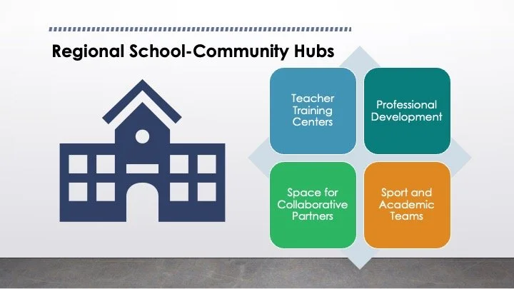 Our model utilizes one school building in each of our 5 elementary school regions as a Community Hub. This building will serve as a point place where school district, community, and student needs are being met through a variety of services - including before and after school care, transportation, professional development, extracurricular enrichment, and much, much more.